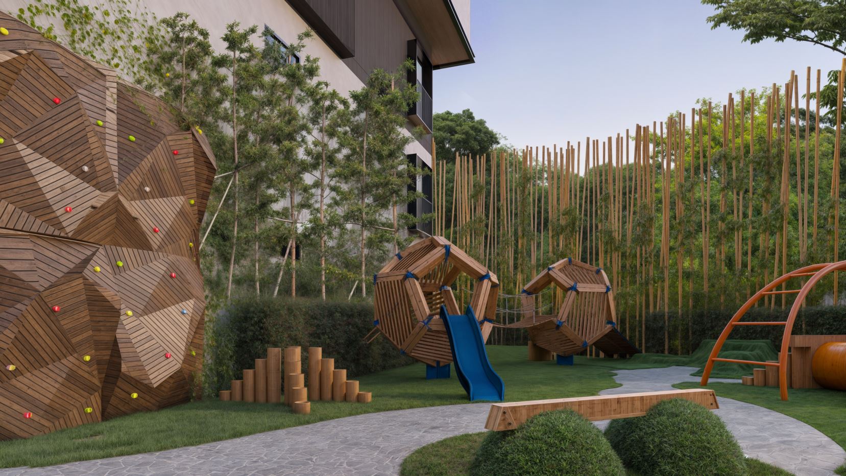 Amplios espacios verdes y senderos naturales