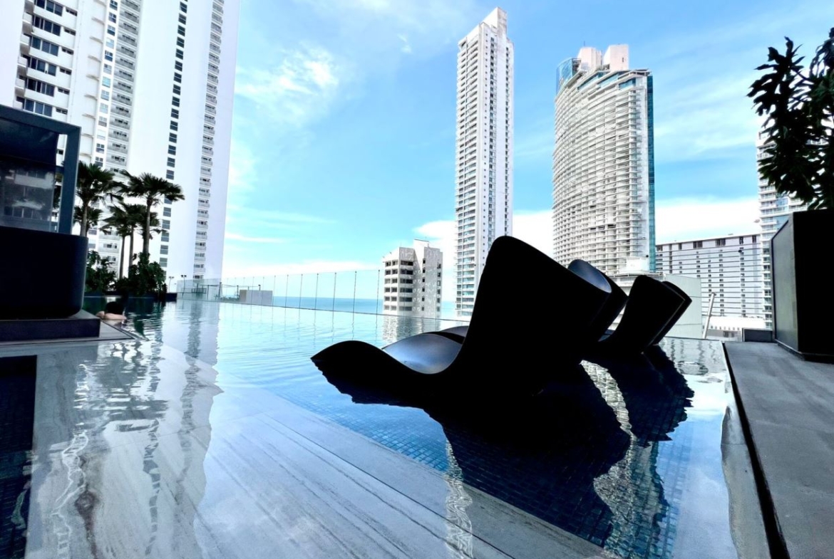 Se alquila apartamento totalmente nuevo en PH Nuovo Armani, un edificio exclusivo en Bella Vista, Calle 42, con un diseño moderno y acabados de alta calidad.Este elegante apartamento cuenta con 2 recámaras, 1 estudio ideal para oficina o área de trabajo, 3 baños, 1 estacionamiento privado, lavandería, cocina abierta con estufa y línea blanca completamente nueva, además de un balcón con vista al mar, perfecto para disfrutar del aire fresco y la luz natural.
